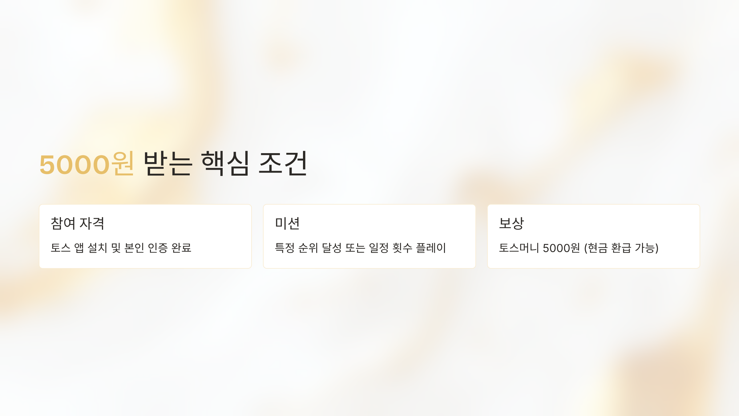 | 보상 | 토스머니 5000원 (일부는 현금 환급 가능) |