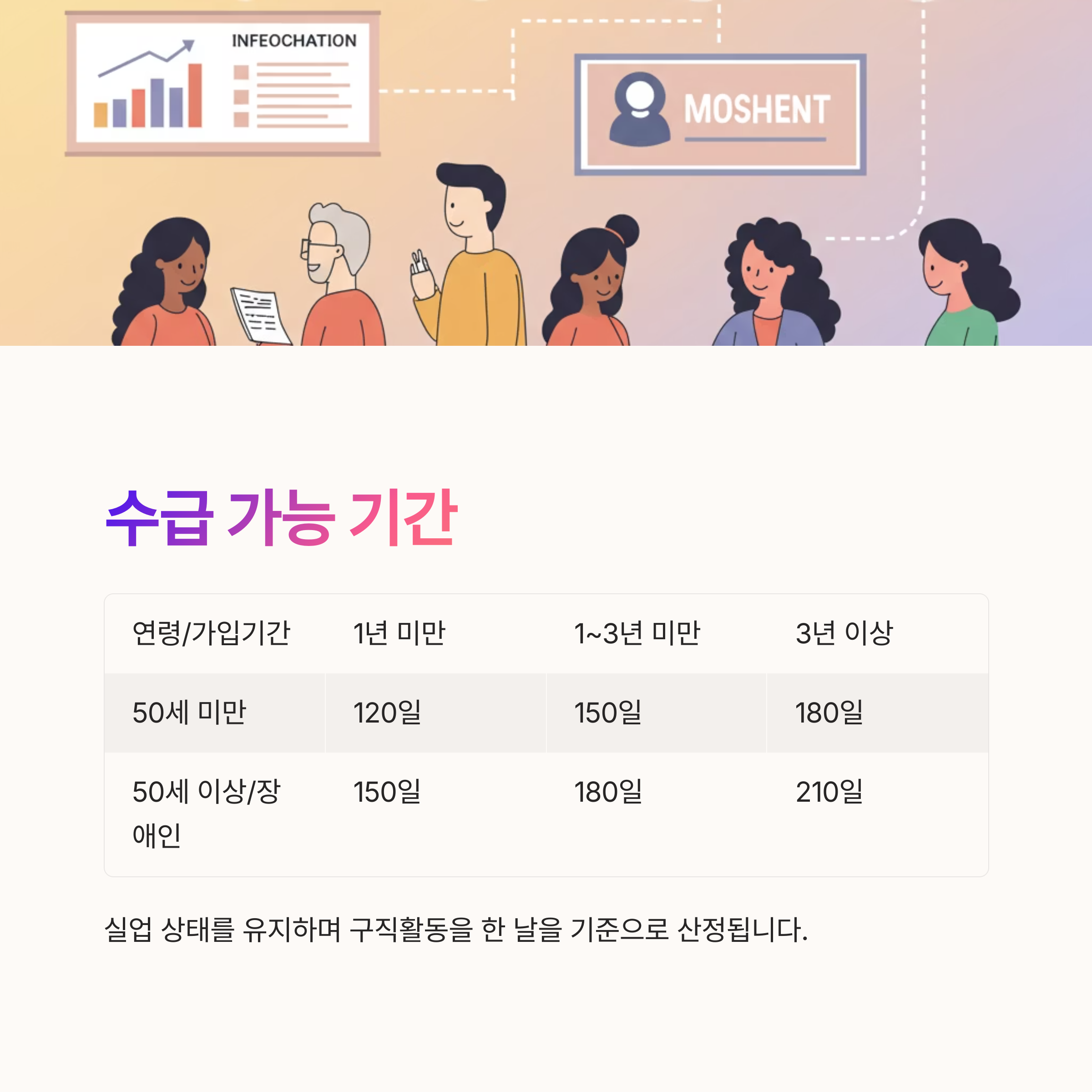 | 50세 이상 또는 장애인 | 150일 | 180일 | 210일 |