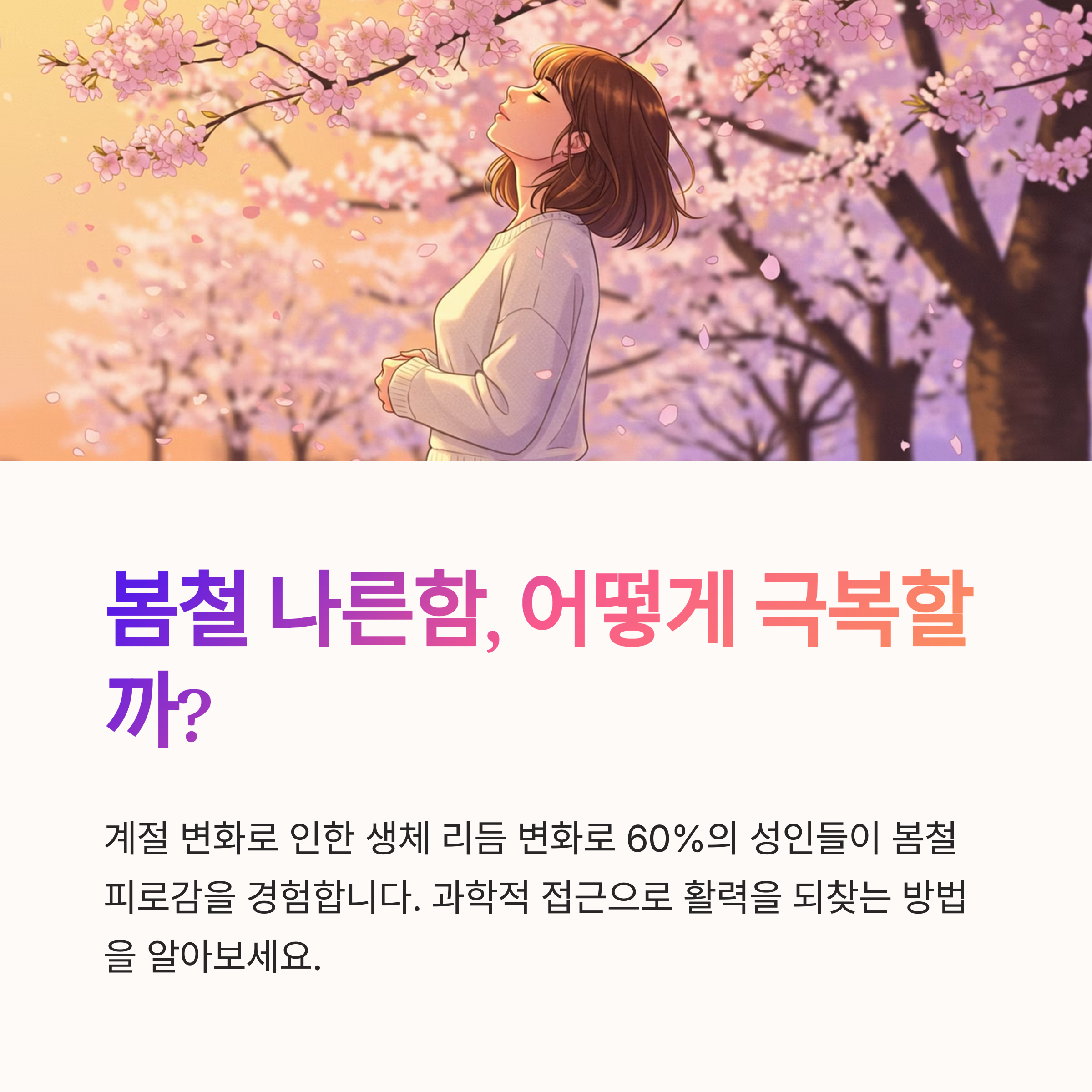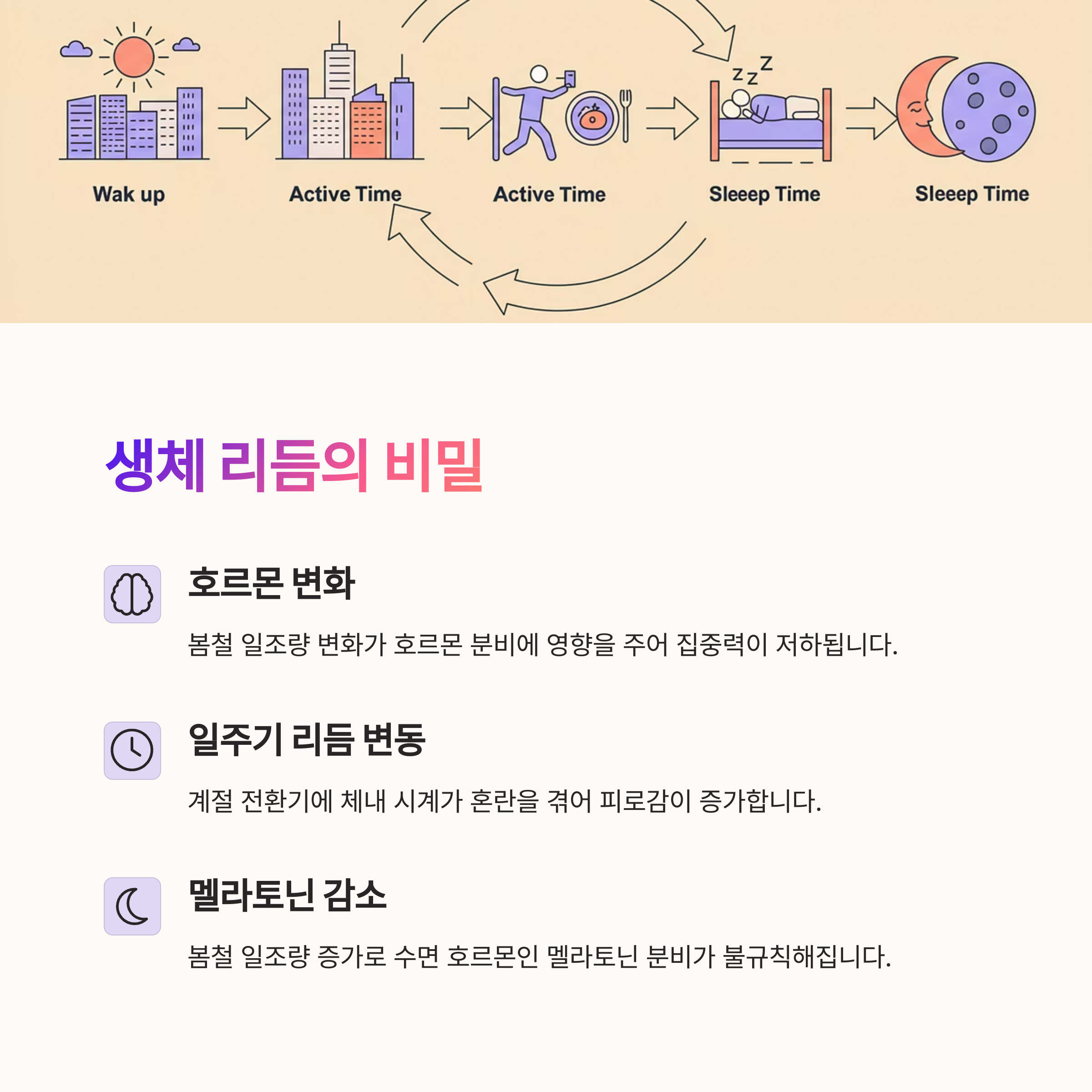 | 나른함의 원인 | 계절 변화로 인한 생체 리듬의 불균형이 주요 원인입니다. |