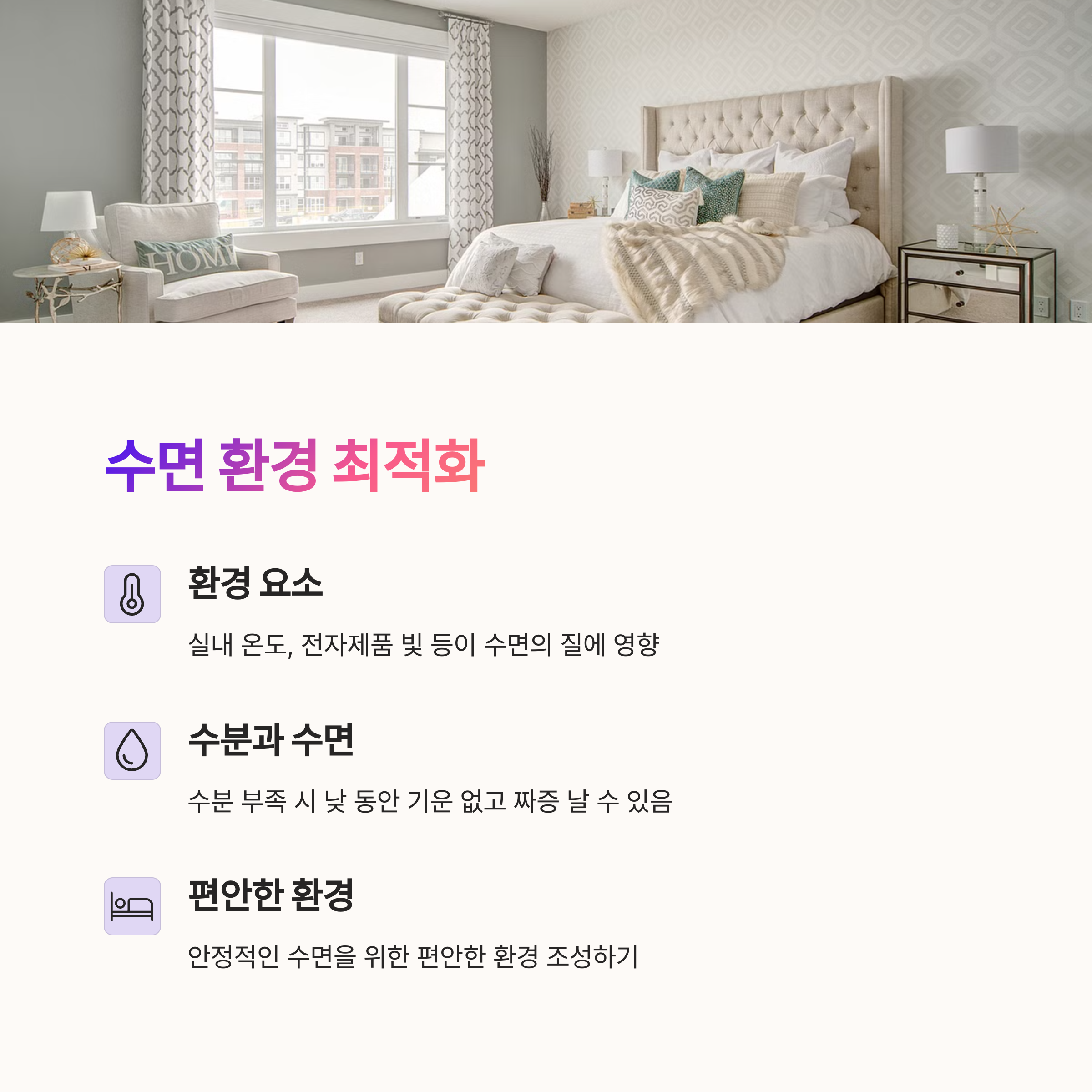 | 스트레칭 | 수분섭취 | 수면관리 |