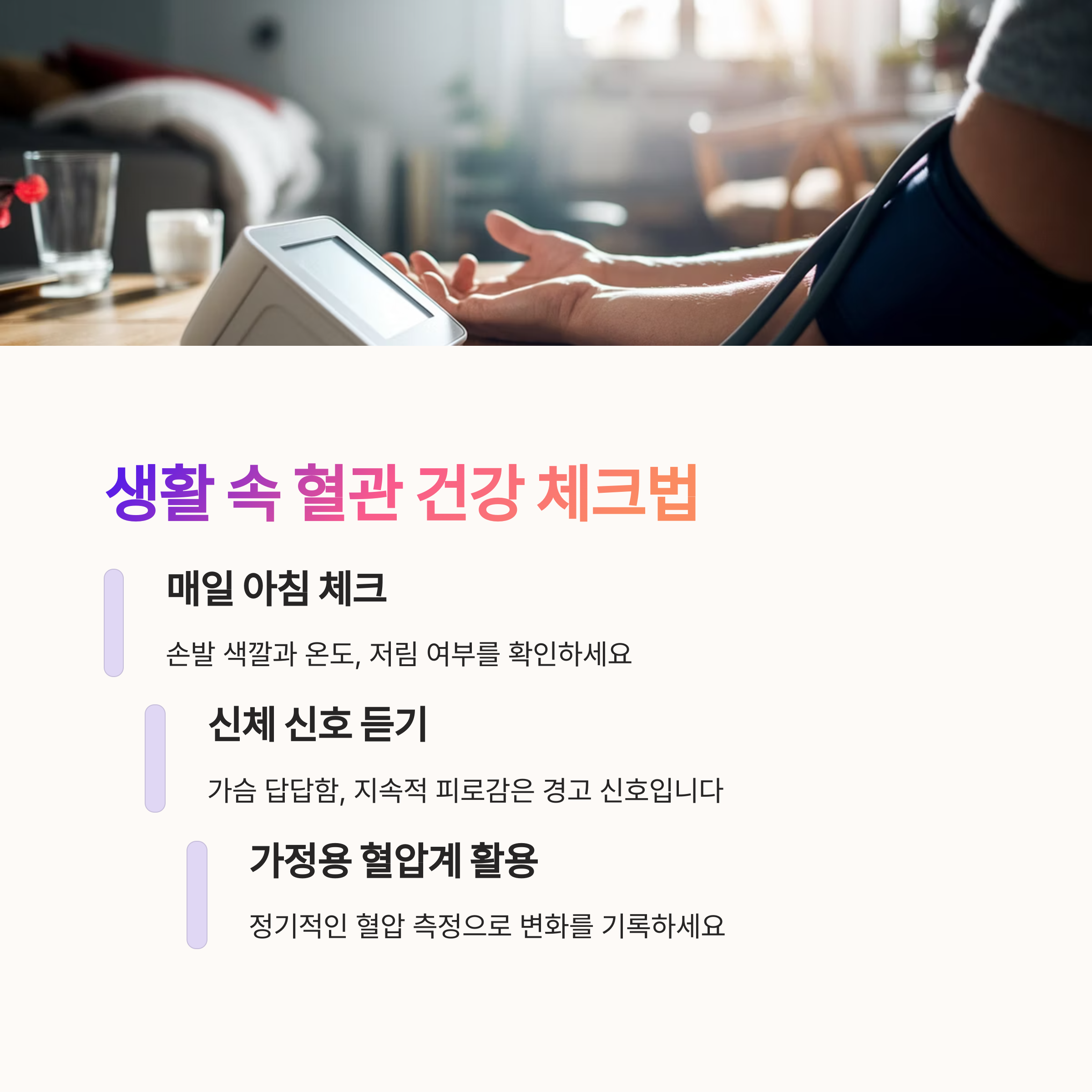 현대 사회에서 많은 이들이 혈관 건강에 대해 무관심한 경향을 보입니다. 하지만 이로 인해 발생하는 문제들은 삶의 질에 큰 영향을 미칠 수 있으며, 단순한 피로감부터 심각한 질병까지 이어질 수 있습니다. 조기 진단과 예방이 중요한 만큼, 일상 속에서 스스로 점검할 수 있는 방법을 알고 있는 것이 중요합니다. 이 글에서는 혈관 문제를 의심해야 할 체크포인트를 정리해드리며, 실생활에서 활용 가능한 팁도 함께 전해드릴 예정입니다. 건강은 작은 신호에서 시작됩니다. 지금부터 천천히 확인해보시고 여러분의 몸이 보내는 메시지를 귀 기울여 들어보세요.
