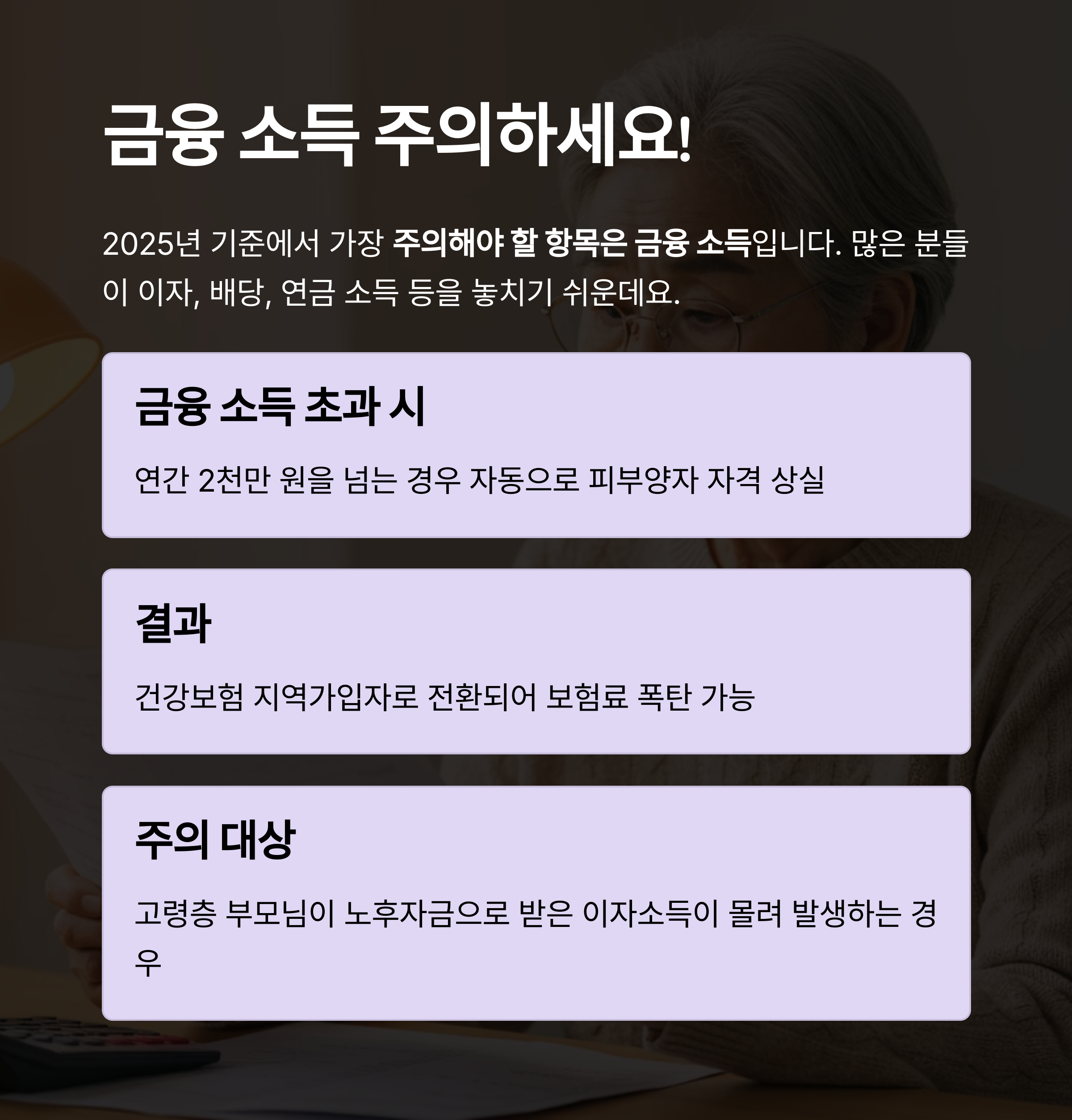 2025년 기준에서 가장 주의해야 할 항목은 금융 소득입니다.