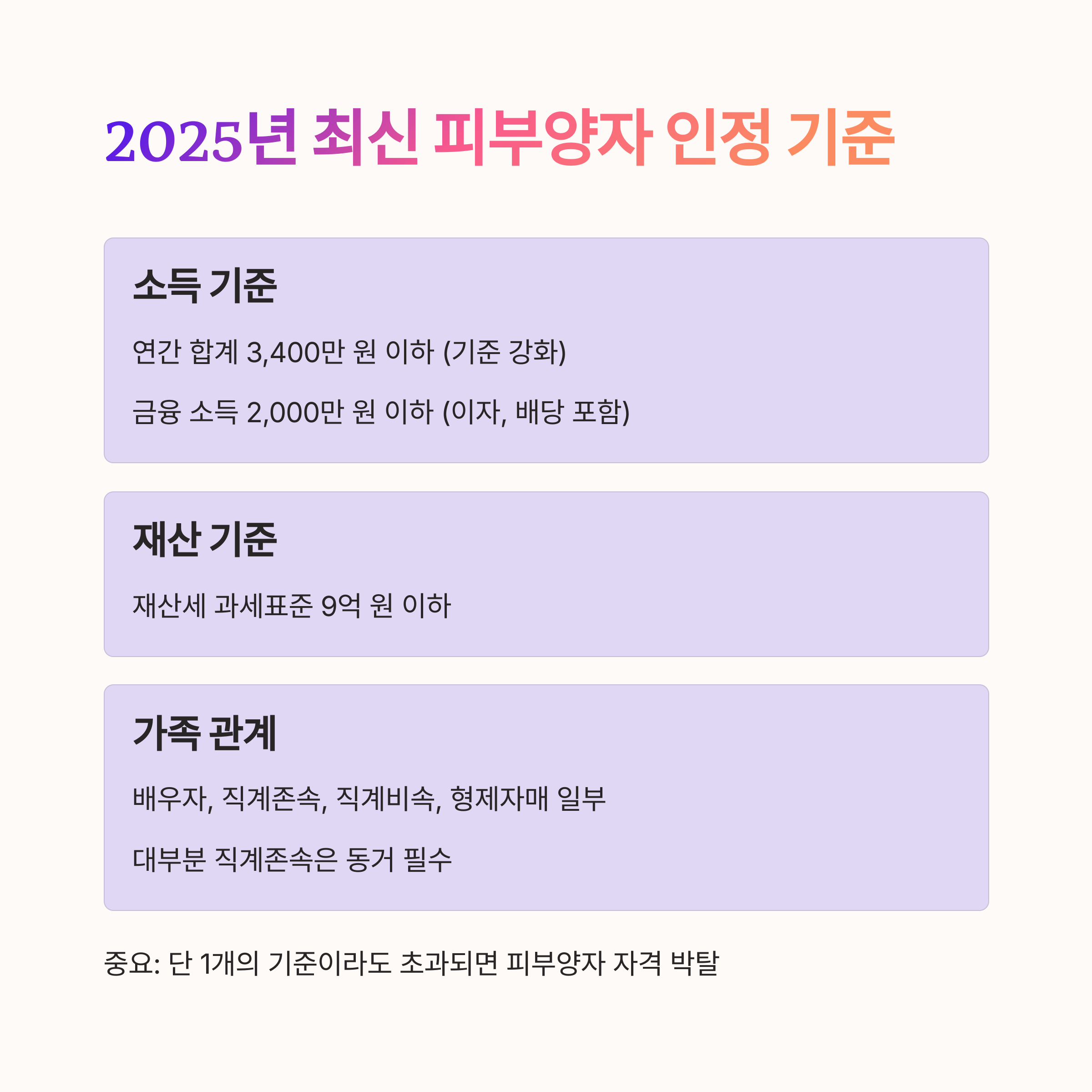 "중요: 단 1개의 기준이라도 초과되면 피부양자 자격 박탈"