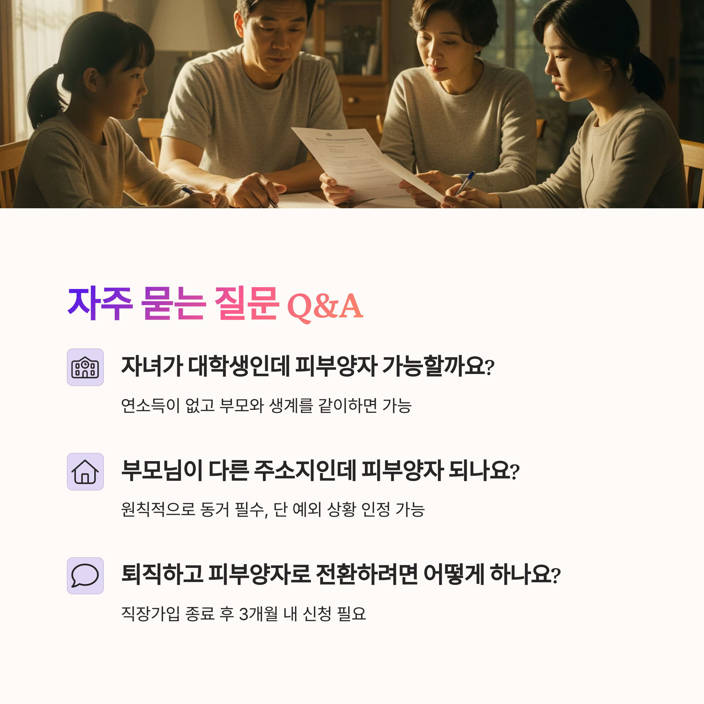 자주 묻는 질문 Q&A: 피부양자 요건 헷갈릴 때는?