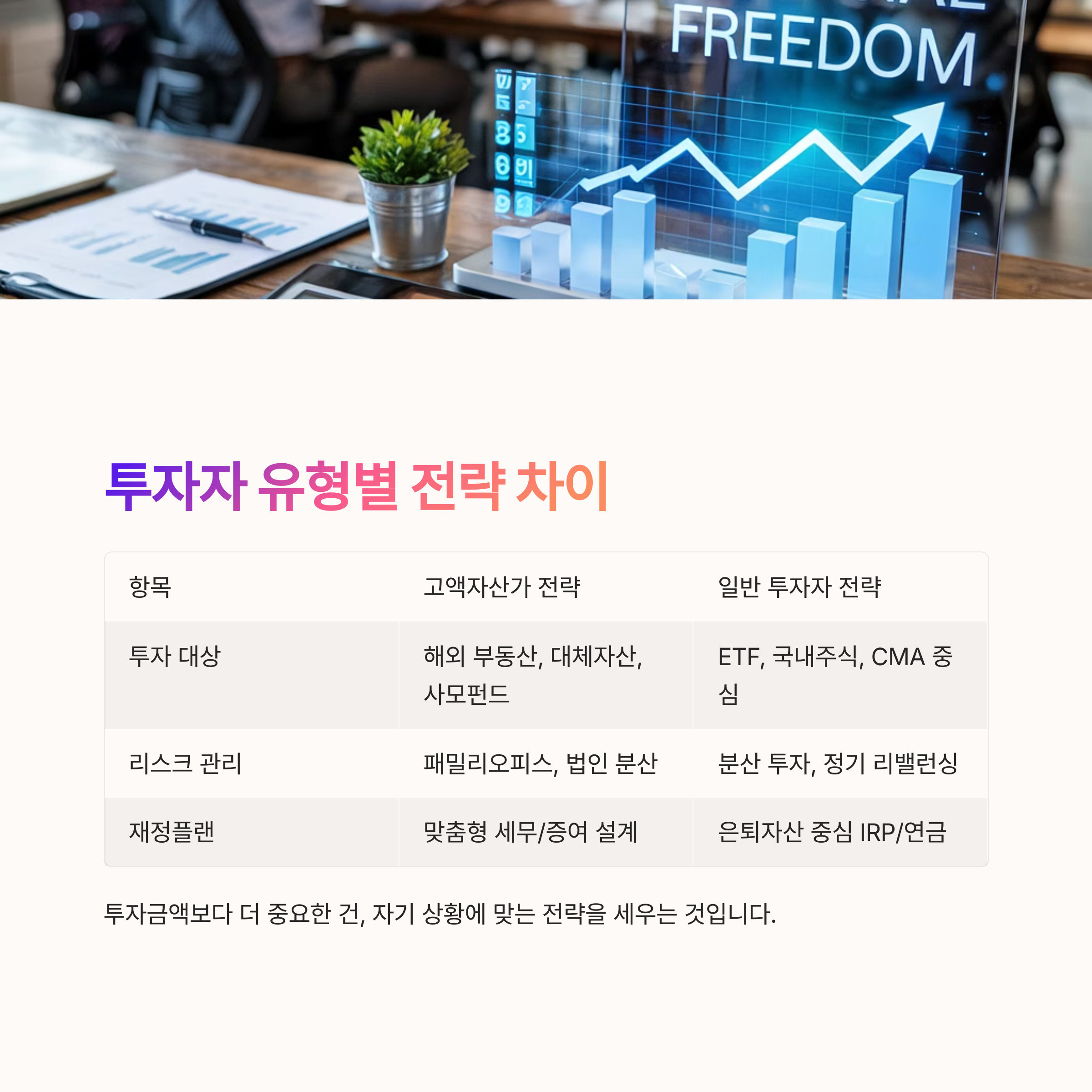 | 리스크 관리 | 패밀리오피스 활용, 법인 분산 | 분산 투자, 정기 리밸런싱 중심 |