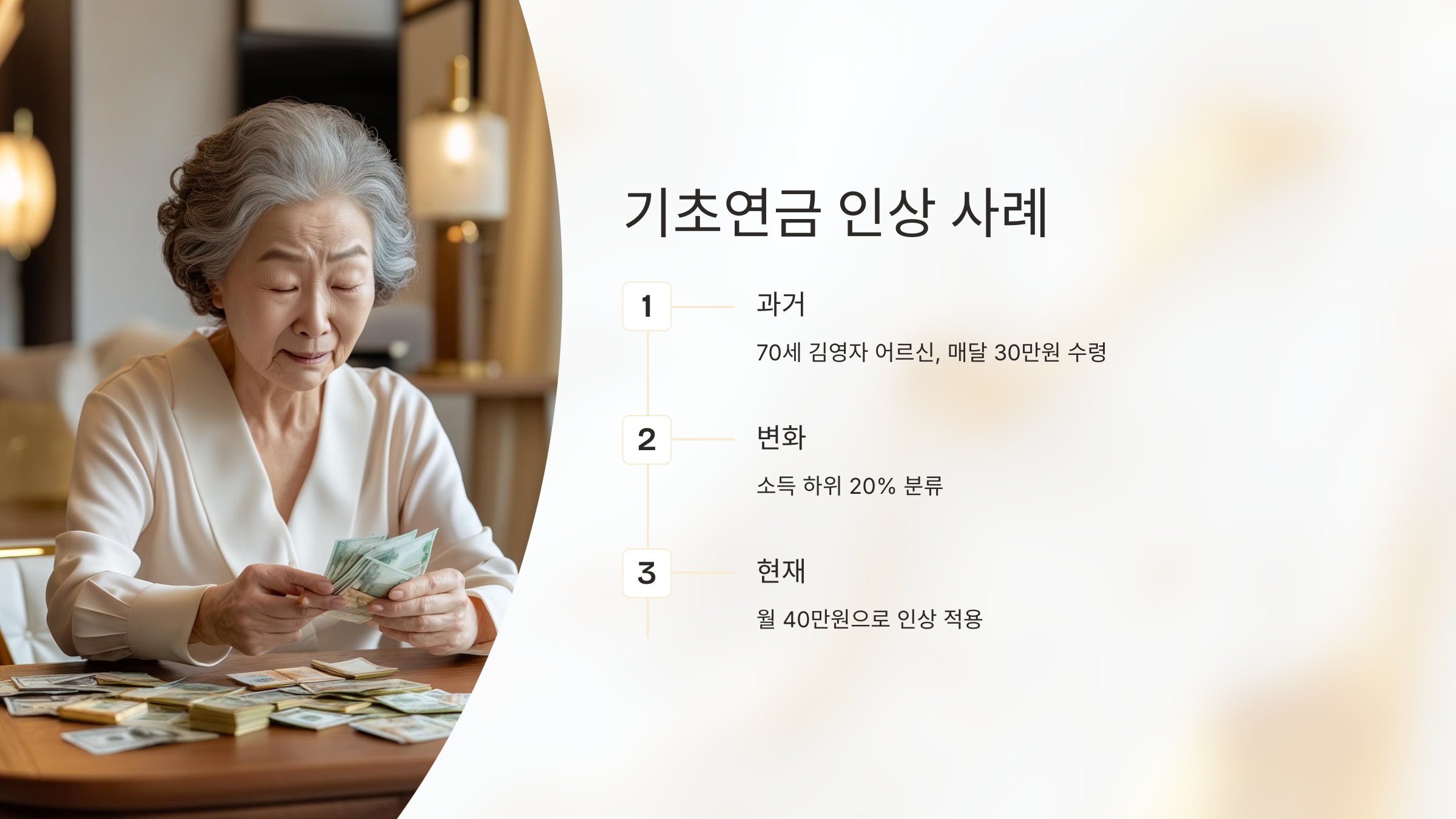 기초연금 인상은 단순한 현금 지원을 넘어 노후 빈곤 완화에 실질적인 영향을 줍니다.