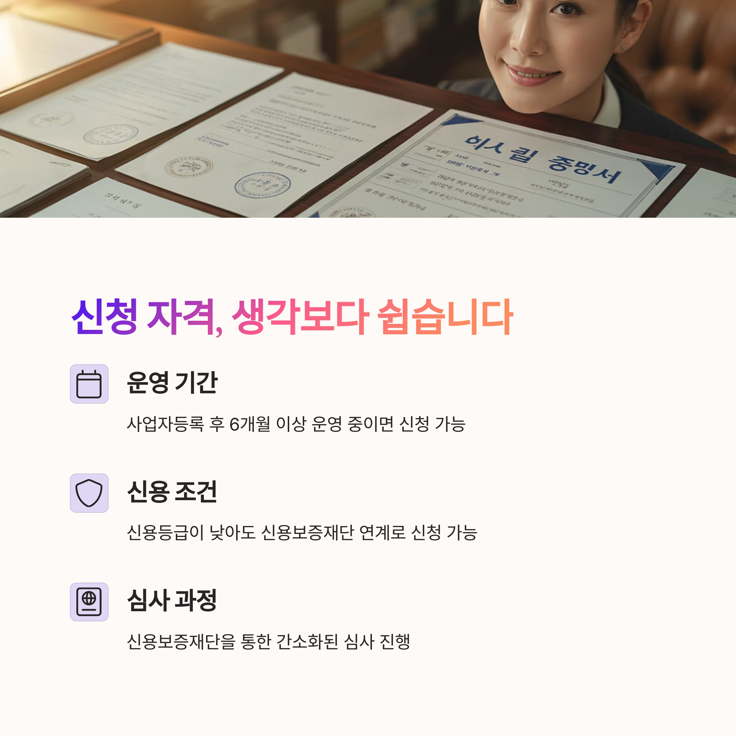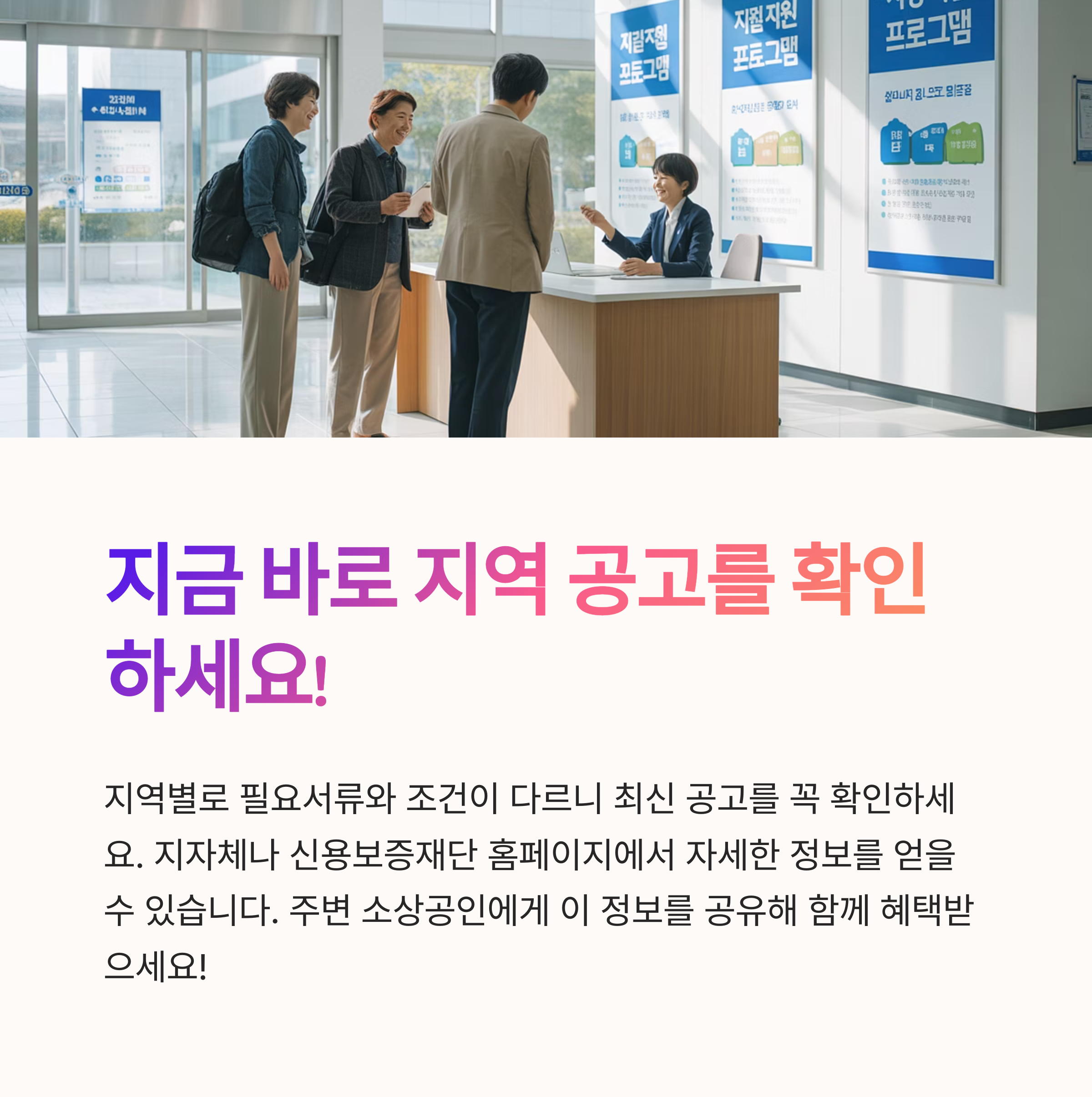 | 사업자등록 6개월 이상, 피해 업종 우대 | 업체당 최대 3천만 원 (지역별 상이) | 사업자등록증, 매출증빙, 신용서류 등 |