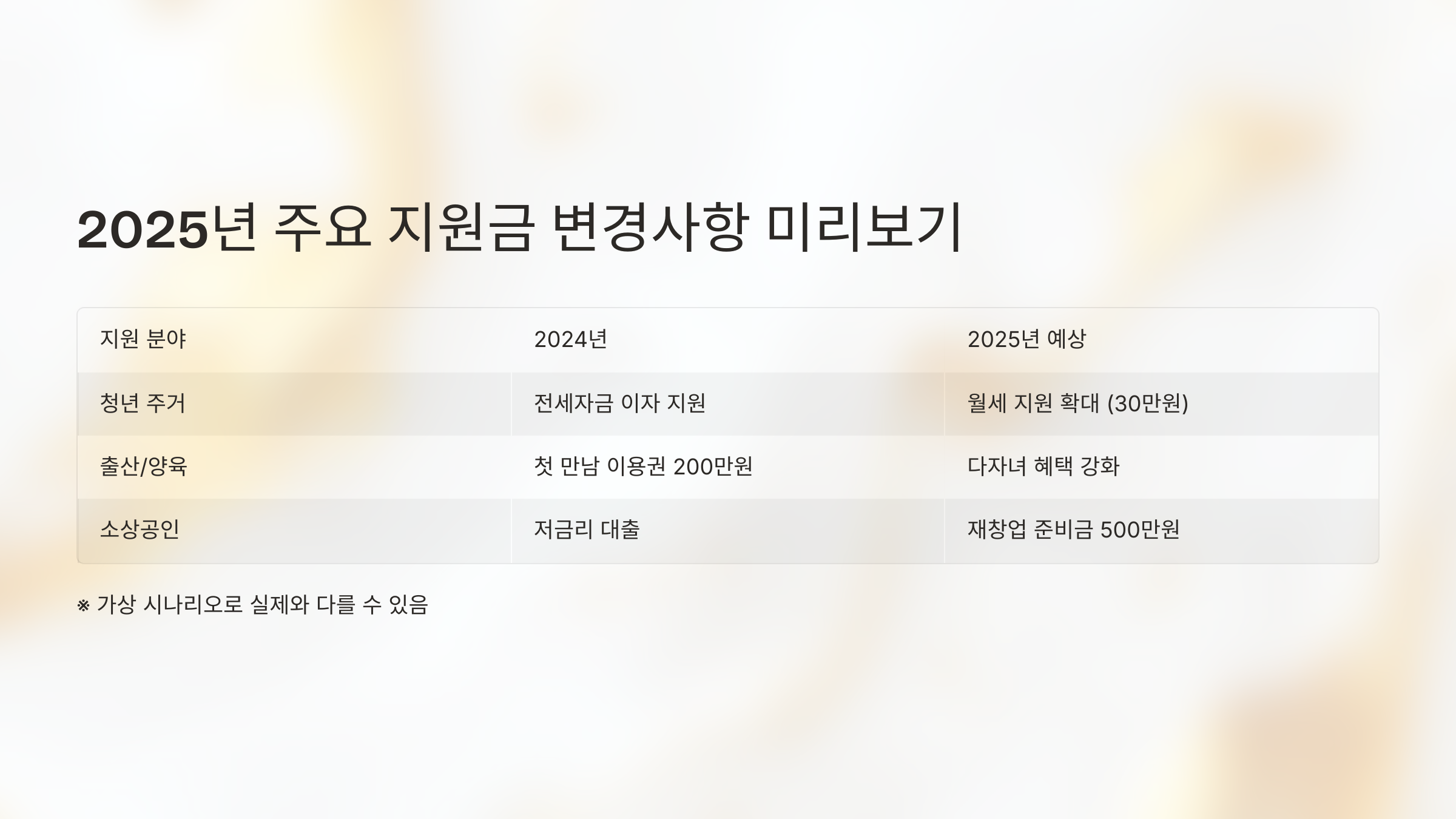2025년 주요 지원금 변경사항 미리보기 (가상 시나리오) 📈