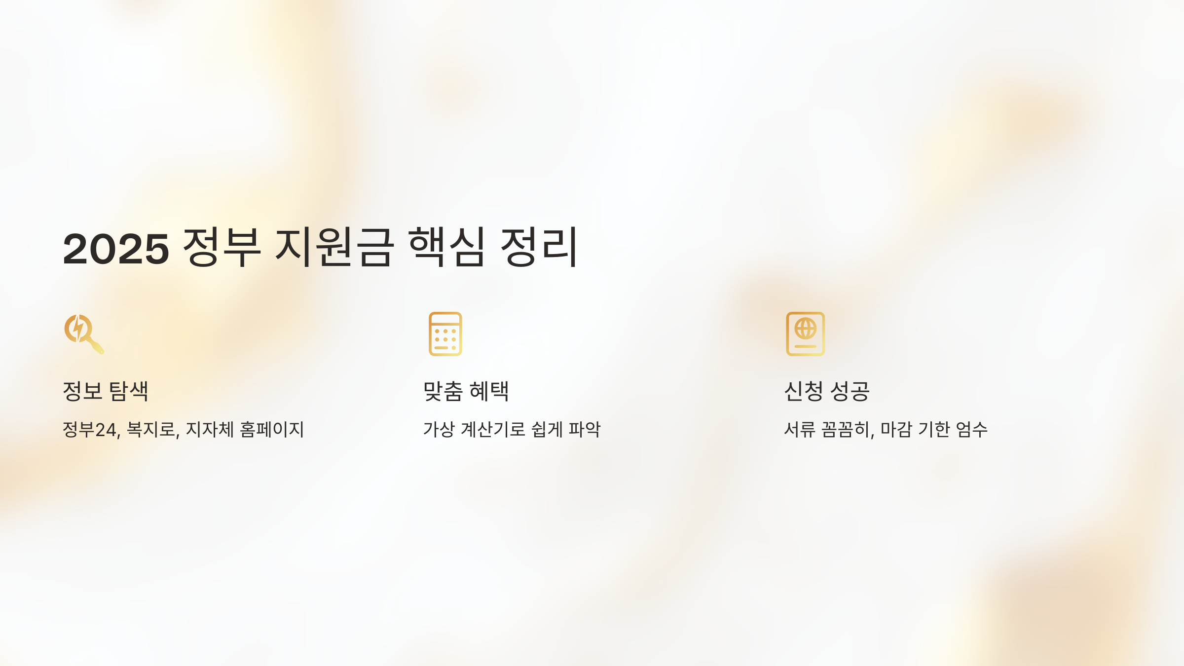 매년 이맘때쯤이면 "내년엔 어떤 정부 지원금이 나올까?", "작년에 받았던 혜택이 혹시 바뀌는 건 아닐까?" 하는 궁금증이 슬금슬금 올라오지 않으시나요? 저도 그렇더라고요! 😊 복잡하고 방대한 정보 속에서 나에게 꼭 맞는 혜택을 찾아내는 것은 생각보다 쉬운 일이 아니잖아요. 하지만 조금만 관심을 가지고 들여다보면, 우리 생활에 정말 큰 도움이 되는 지원금들이 생각보다 많답니다. 오늘은 2025년에 달라지는 정부 지원금을 똑똑하게 파악하고, 여러분에게 꼭 맞는 혜택을 놓치지 않고 찾아낼 수 있는 스마트한 방법을 함께 알아볼게요!