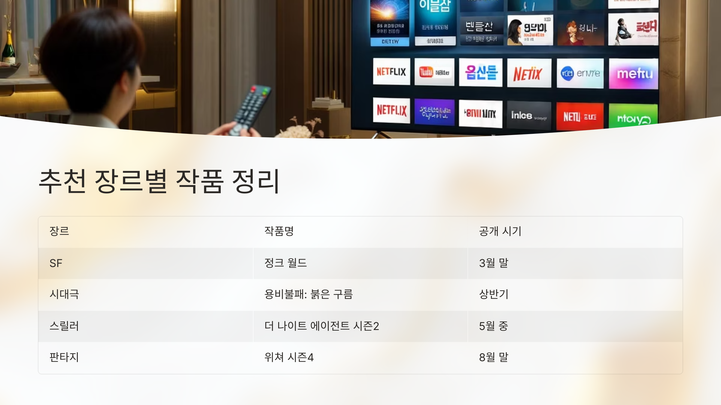 2025년 넷플릭스 주요 작품을 장르별로 정리하면 아래와 같습니다.