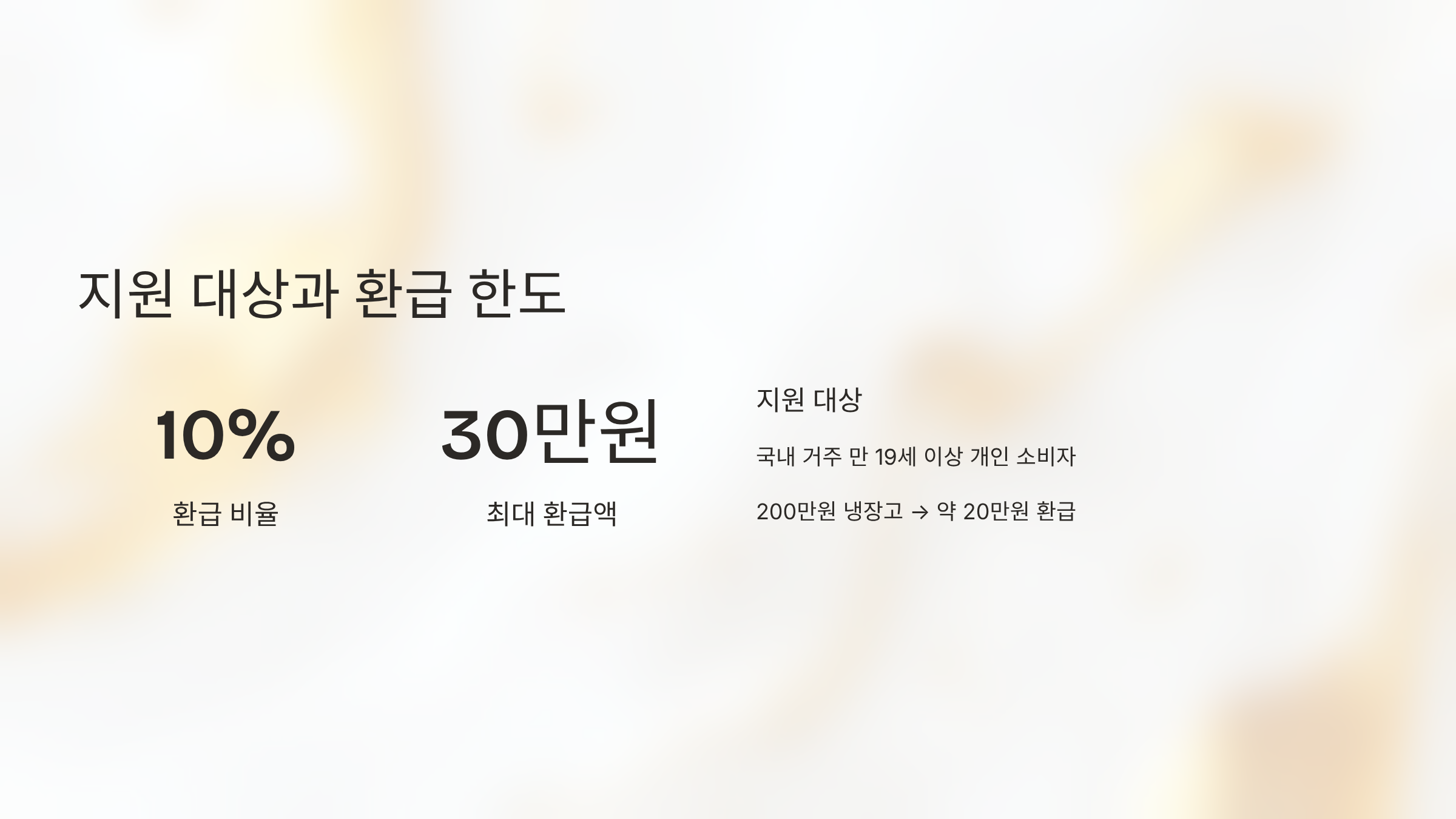| 환급 품목 | 냉장고, 세탁기, 김치냉장고, 에어컨, TV, 공기청정기 등 |