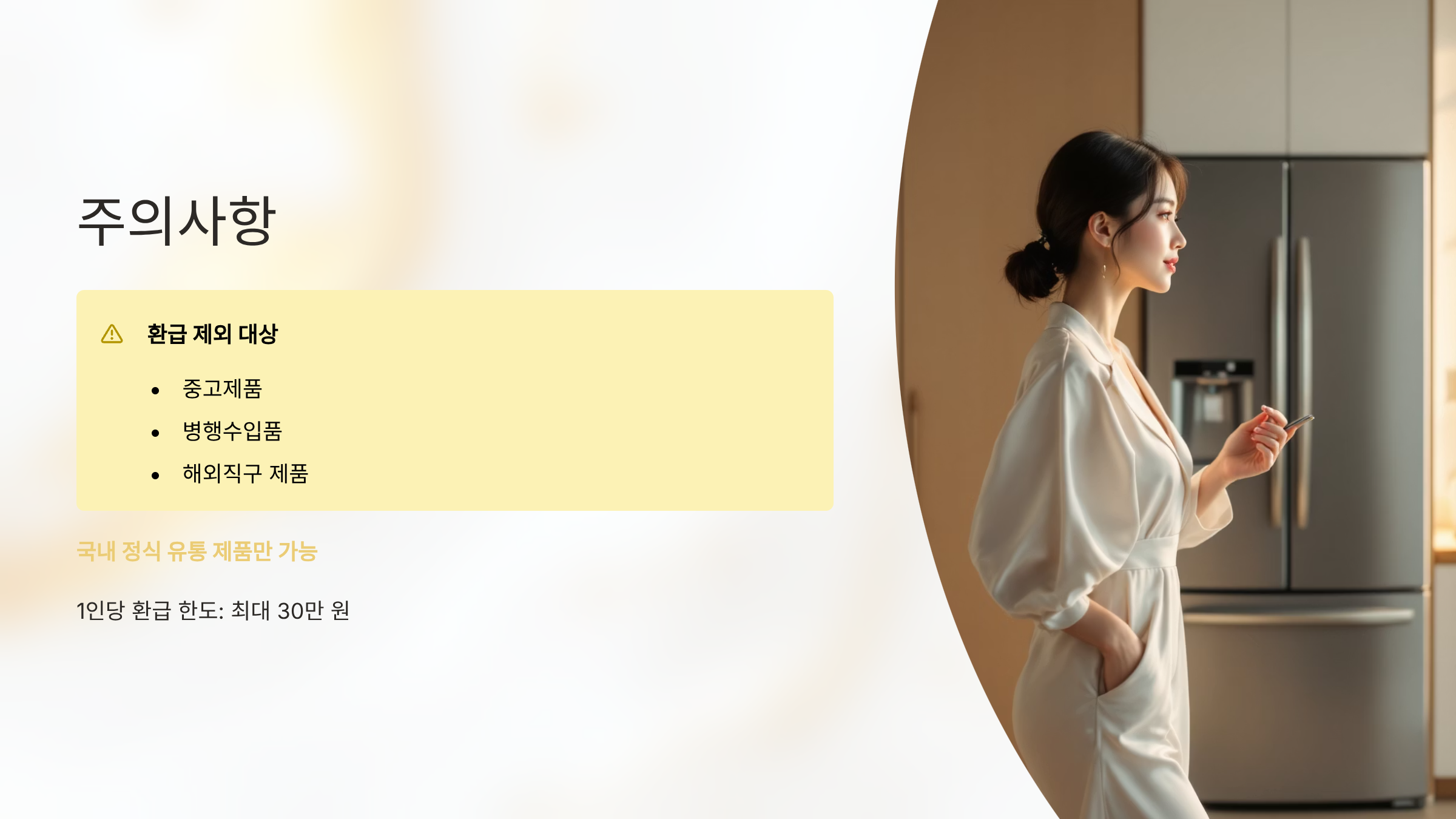 - 중고제품, 병행수입품, 해외직구 제품은 환급 대상에서 제외됩니다.
