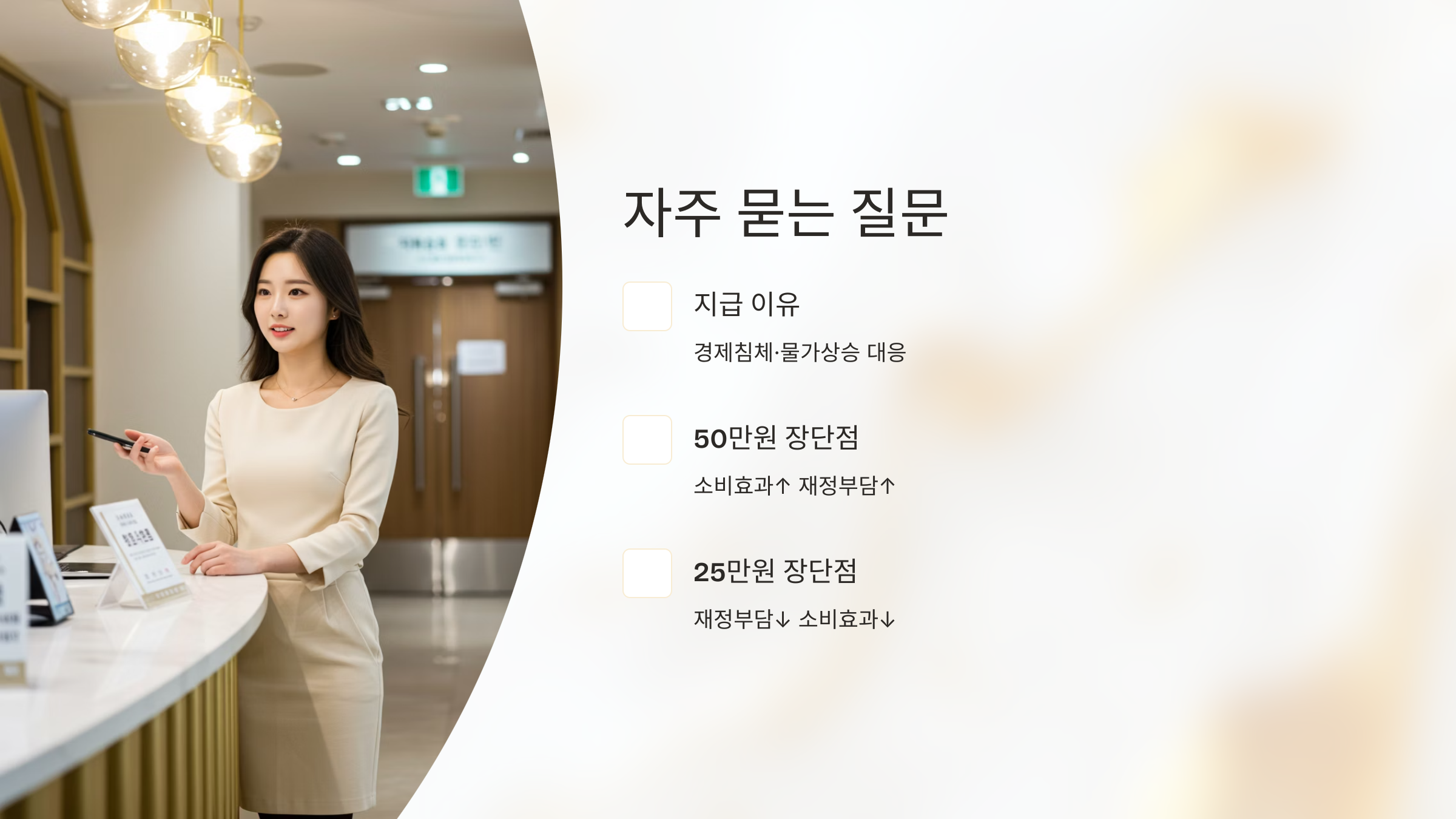 | 가구당 지급액 | 50만원 | 25만원 | 민생 체감 효과 |