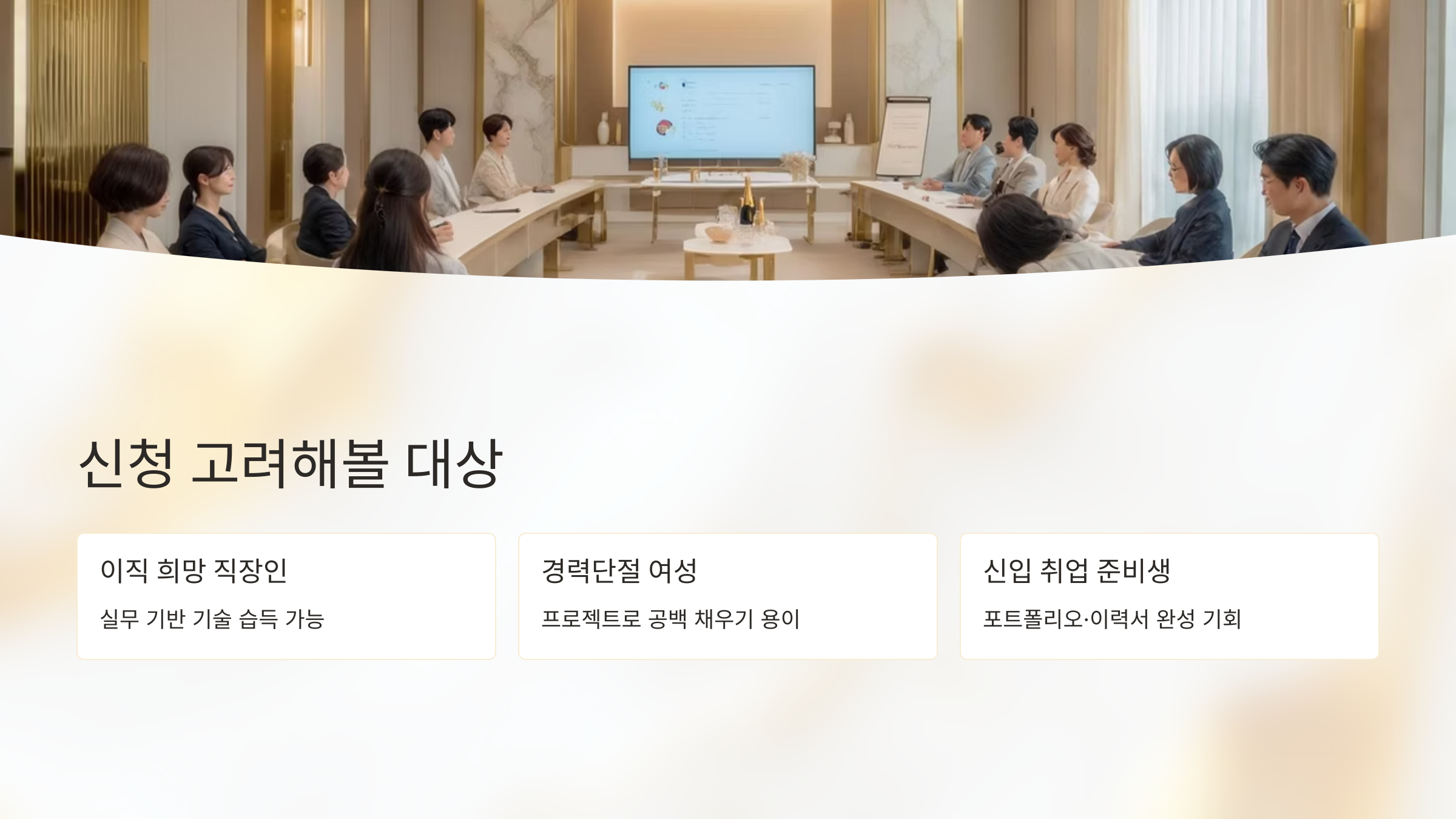 | 신입 취업 준비생 | 포트폴리오·이력서 완성 기회 제공 |