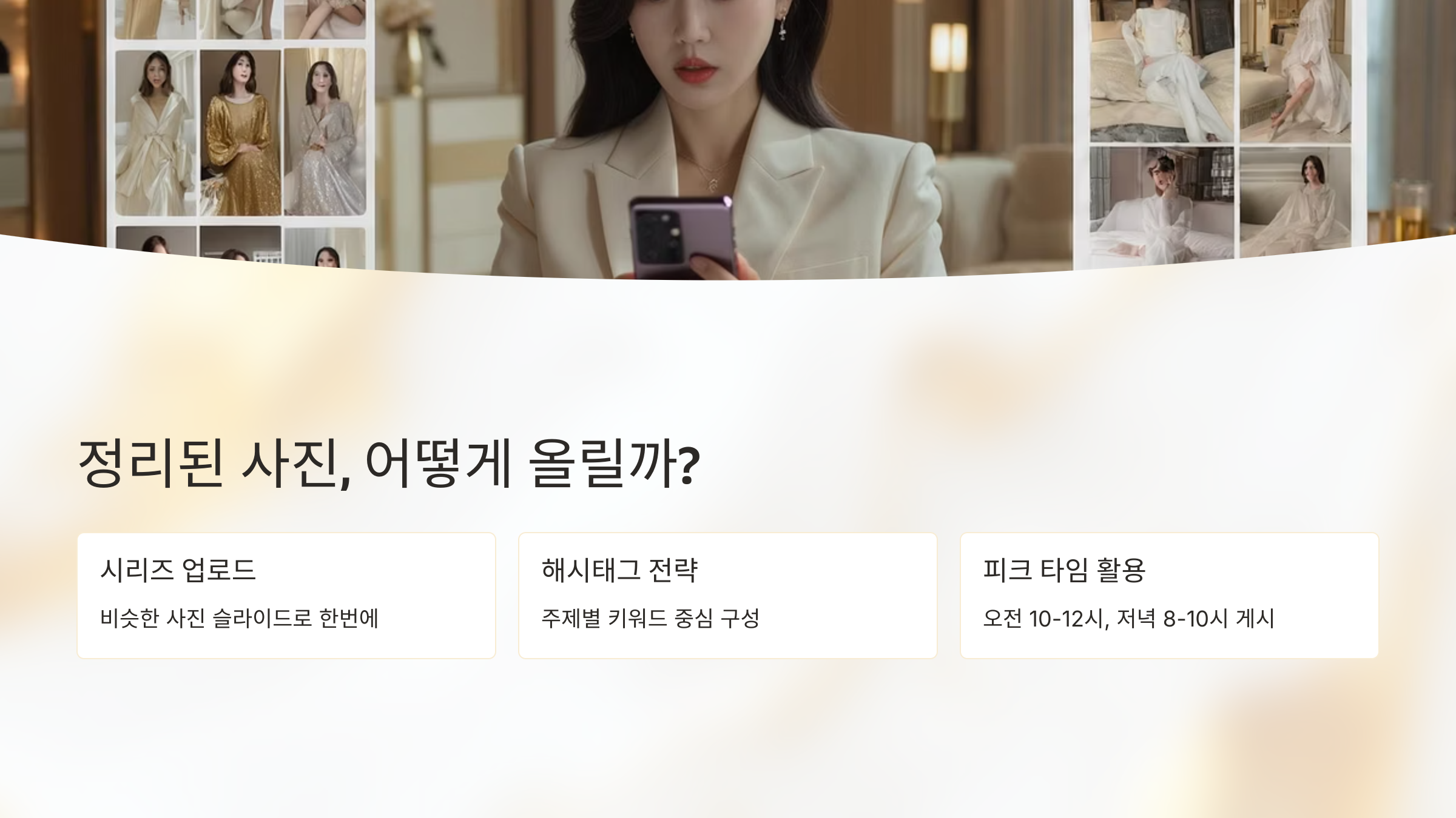 정리되지 않은 사진을 무작정 올리면 전달력도 떨어지고 피드가 어수선해 보일 수 있습니다.