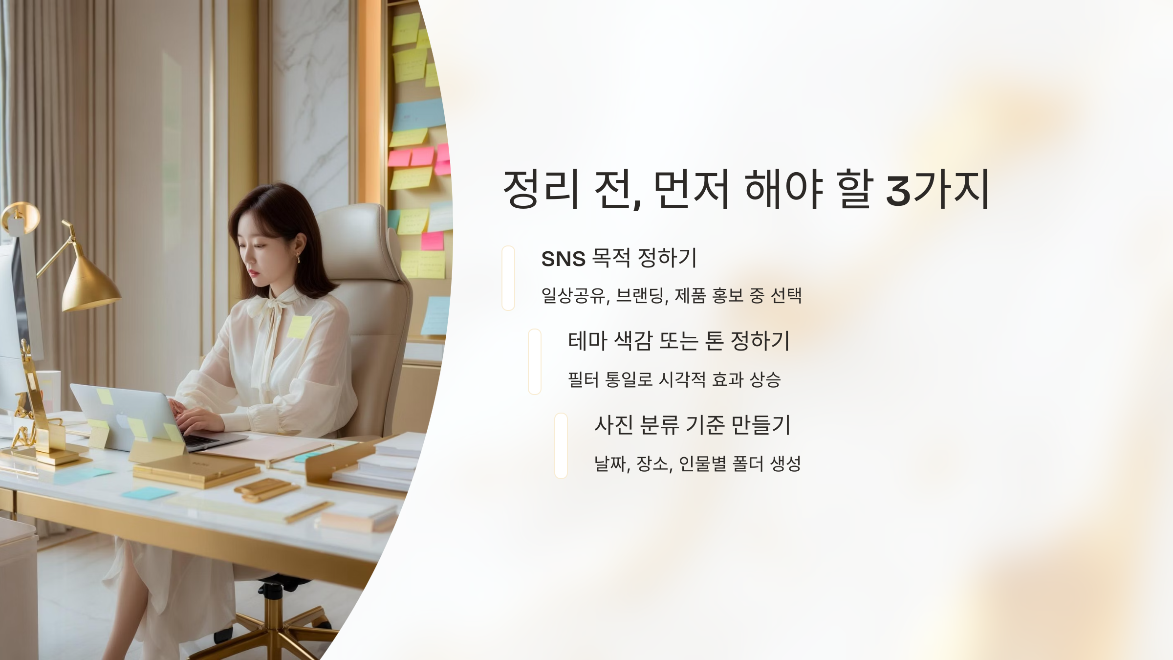 사진 정리를 시작하기 전 아래 3가지를 먼저 정리해두면 훨씬 수월합니다.