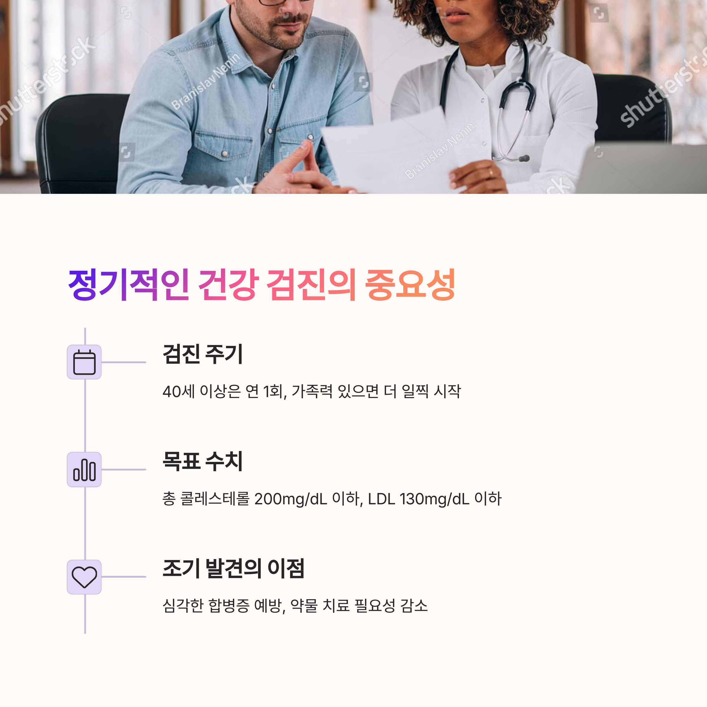 | 고지혈증 방치 위험 | 심장병, 뇌졸중 등 치명적인 질환으로 악화될 수 있음 |