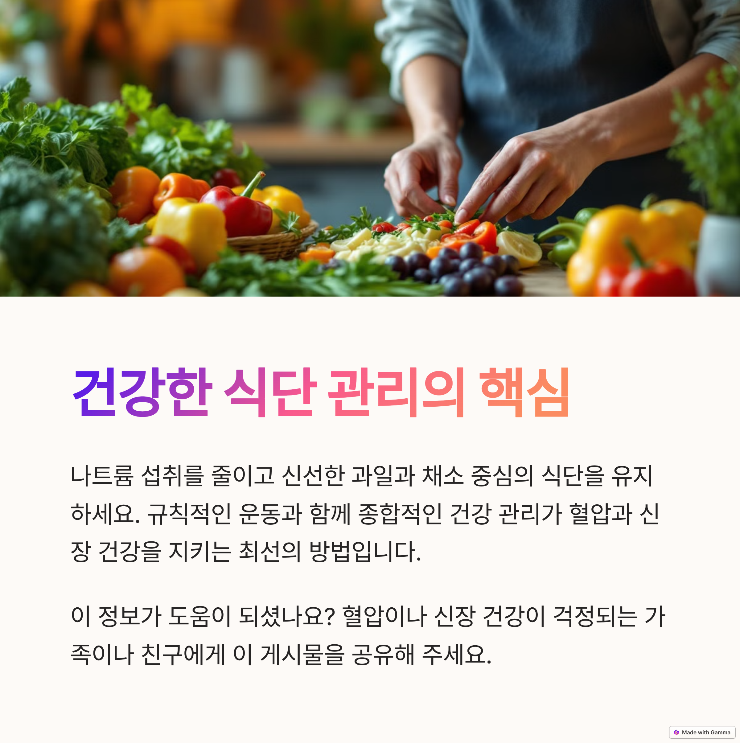 | 신장 건강 지키는 음식 | 신장을 보호하고 노폐물 배출을 돕는 식단 팁을 담았습니다. |