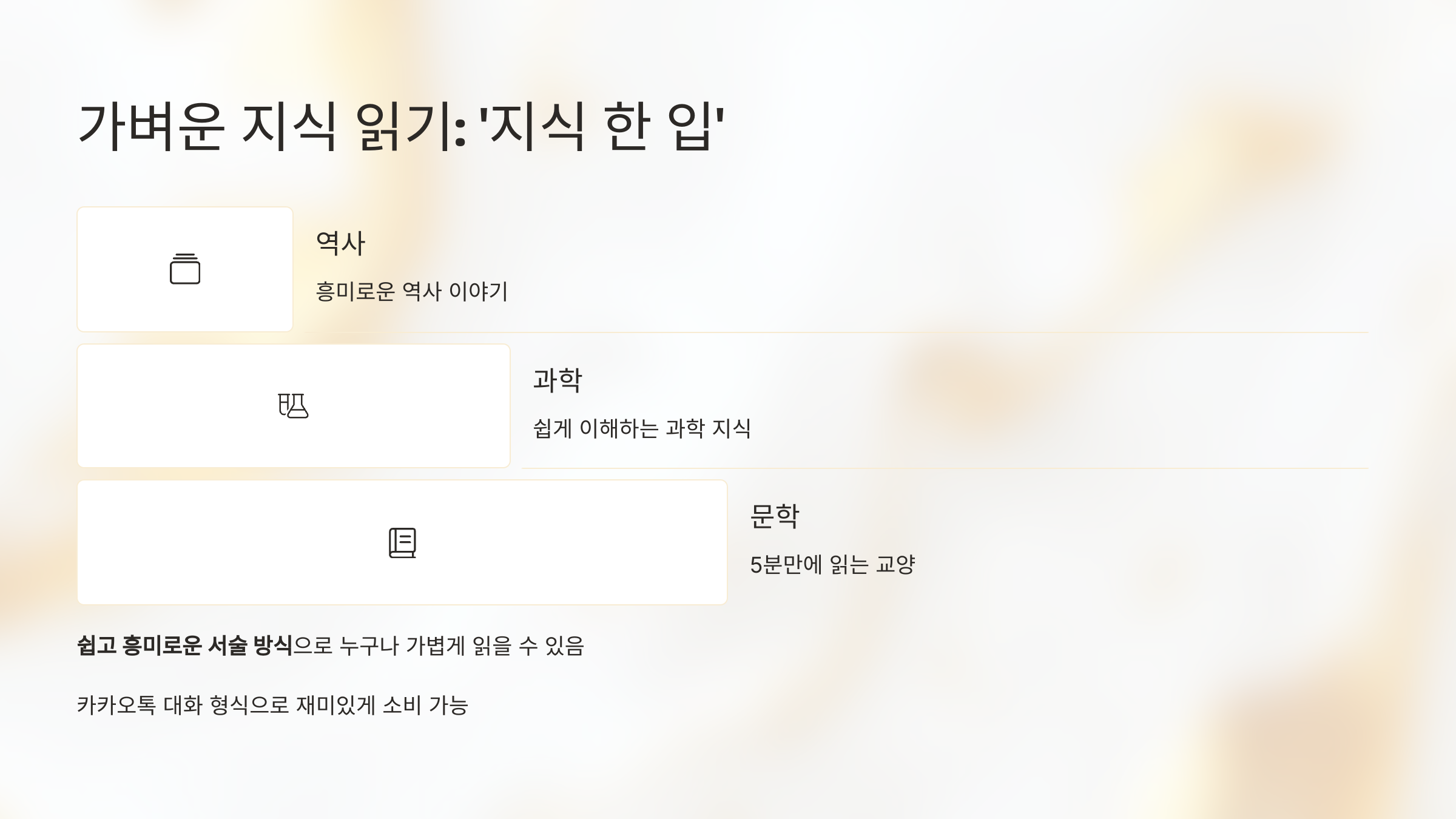 카카오톡 대화 형식으로 구성돼 재미있게 소비할 수 있습니다.