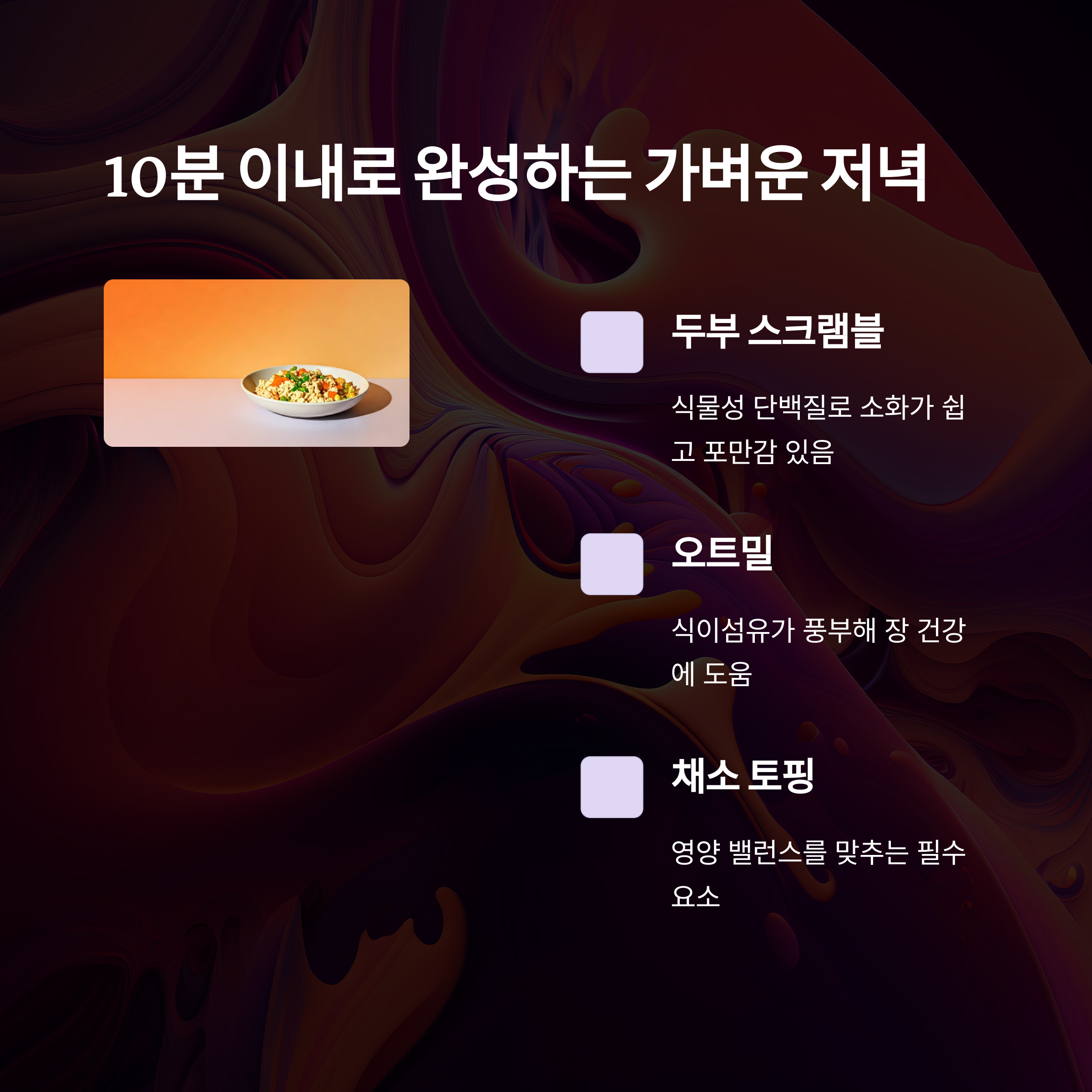 | 간편 건강 식단 | 10분 내 조리 가능한 균형 잡힌 식사 제안 |