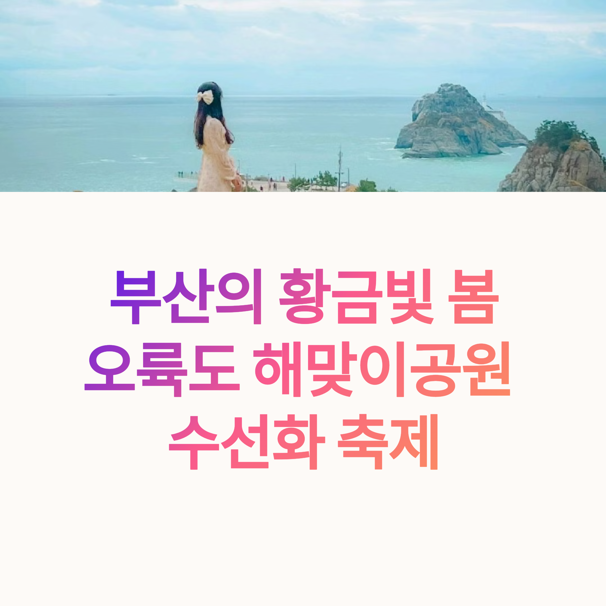 봄이 되면 남쪽부터 꽃 소식이 들려오지요. 그중에서도 부산 오륙도 해맞이공원은 매년 3~4월이면 수선화가 절정을 이루는 아름다운 봄꽃 명소로 잘 알려져 있습니다. 탁 트인 바다를 배경으로 노랗게 피어난 수선화는 누구나 한번쯤 직접 눈으로 보고 싶게 만들죠. 특히 해맞이공원의 수선화는 사진으로만 봐도 마음이 환해질 만큼 밝고 따뜻한 기운을 전합니다. 이런 풍경 속을 산책하며 봄바람을 맞는 기분은 말로 다 표현할 수 없을 정도로 특별합니다. 도심 속 자연 풍경을 즐기며, 힐링 여행을 계획하신다면 지금이 바로 그 시기입니다. 오늘은 여러분께 부산 오륙도 해맞이공원에서 펼쳐지는 수선화 풍경과, 봄꽃 명소로서의 매력을 꼼꼼히 소개해드릴게요.