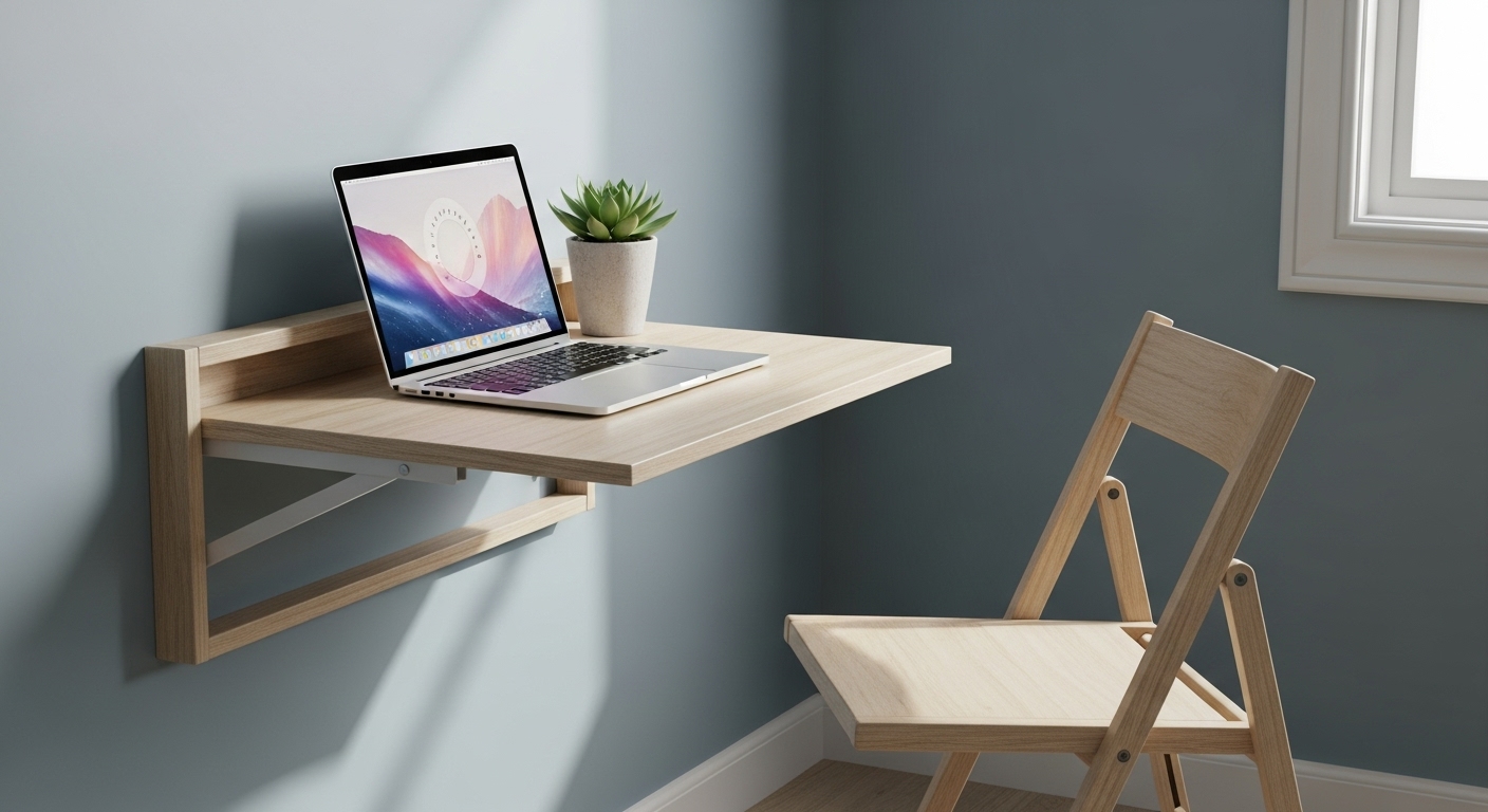 3. 나만의 작업실 겸 독서 공간: 접이식 벽 선반 & 의자