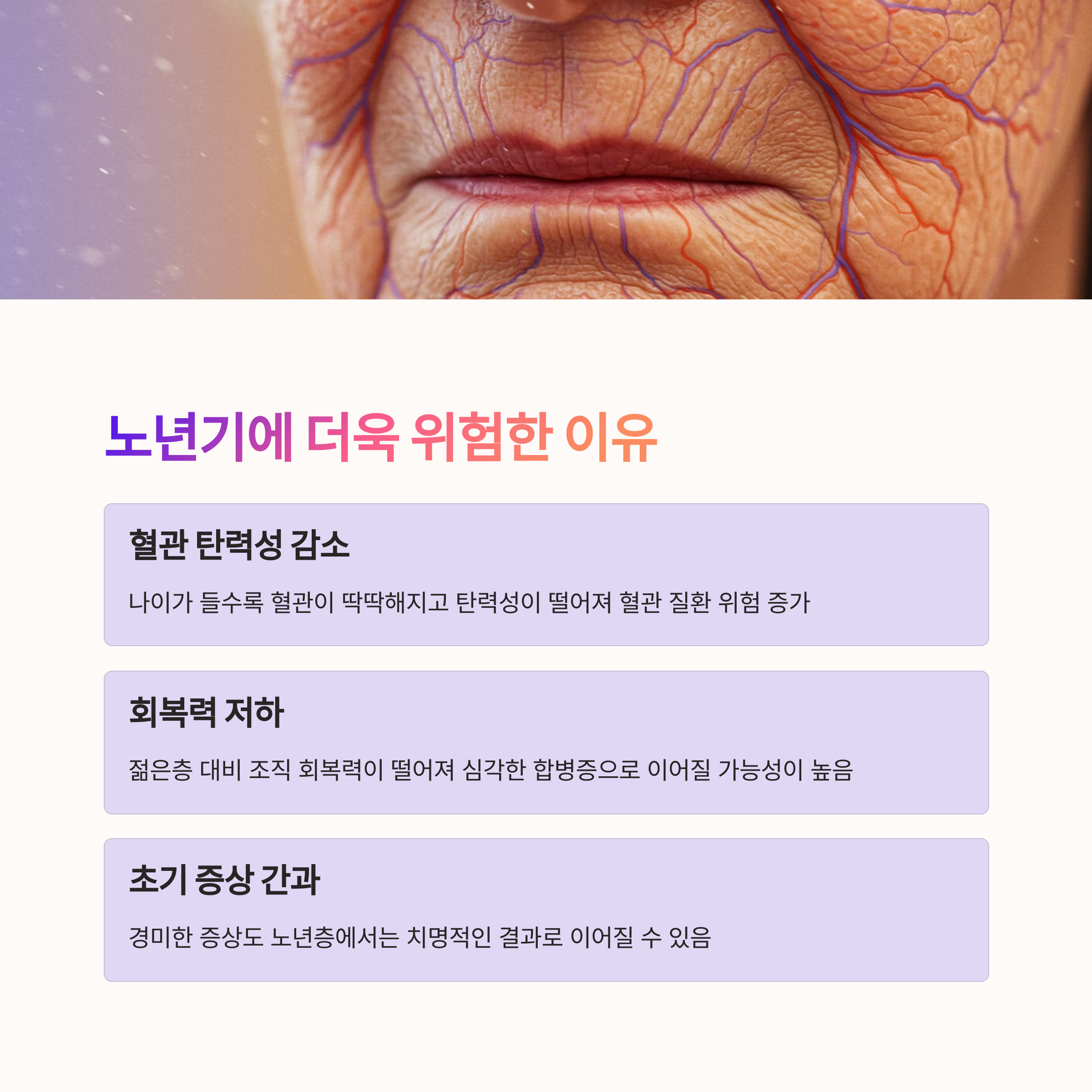 | 노년기 건강 리스크 | 합병증 발생 위험이 높아 미리 예방이 중요합니다 |