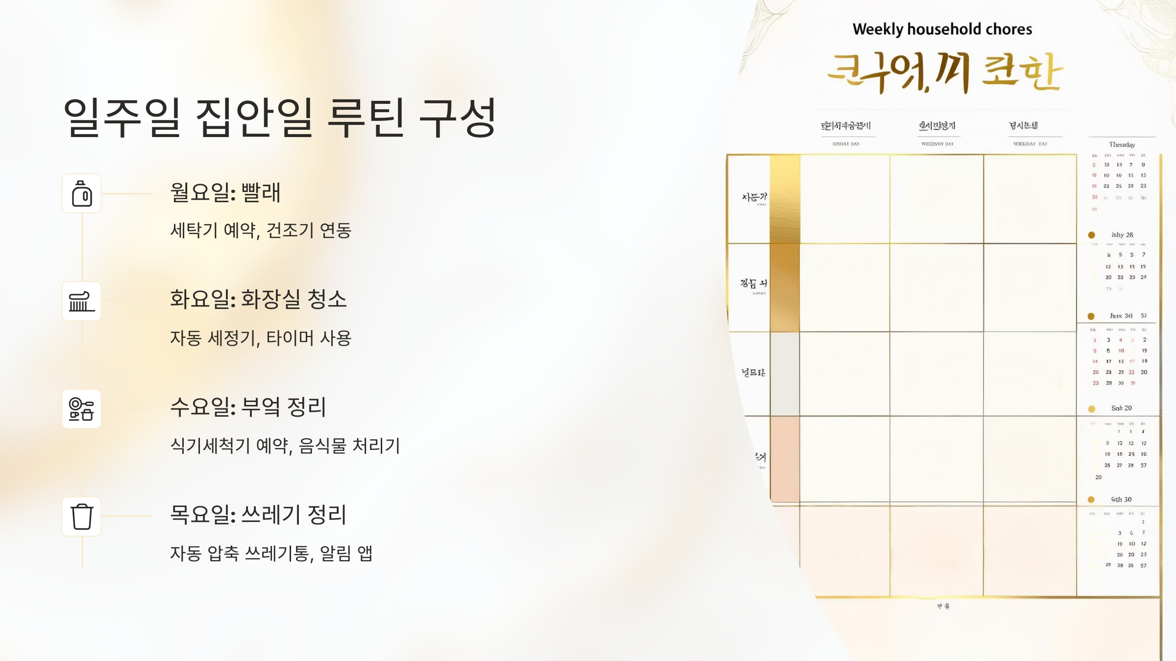 일주일 집안일 루틴 구성 예시