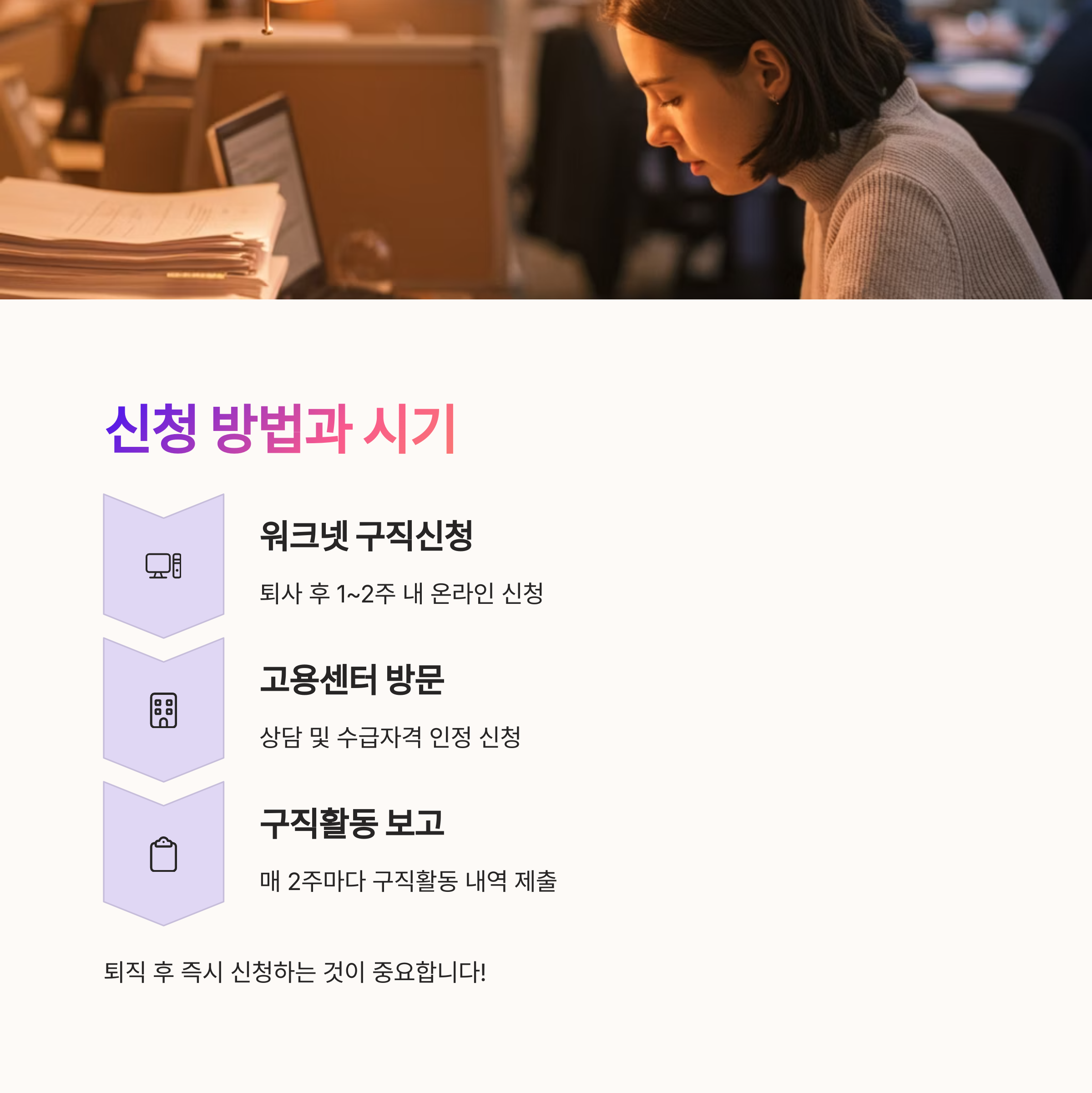 신청 지연 시 수급 시작일도 지연되니, 가급적 퇴직 후 즉시 신청이 중요합니다.