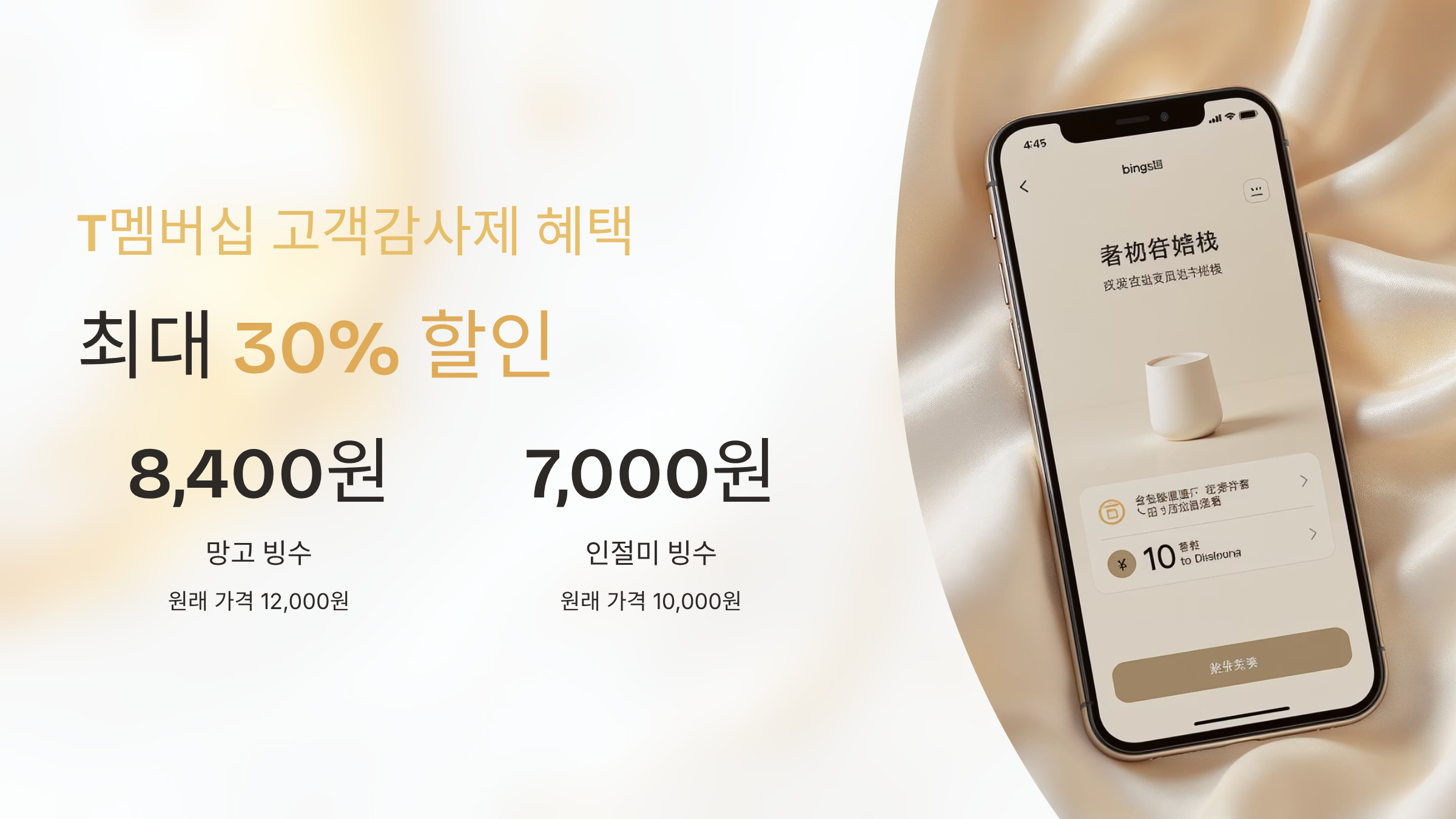 - 망고 빙수 12,000원 → T멤버십 할인 시 약 8,400원