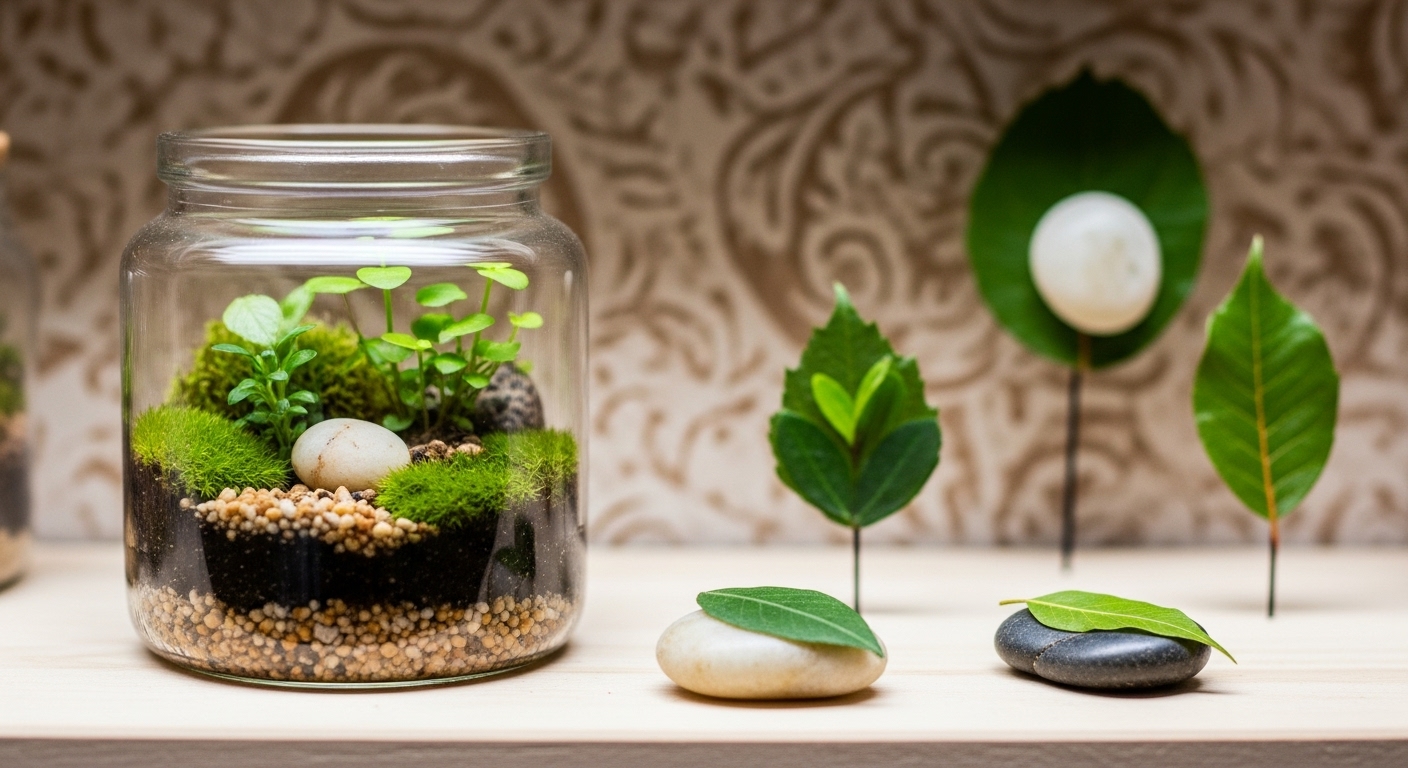 - 식물 테라리움 만들기: 투명한 유리 용기 안에 작은 식물, 흙, 돌을 이용해 나만의 미니 정원을 꾸며보세요. 관리가 쉽고 인테리어 효과도 뛰어납니다.