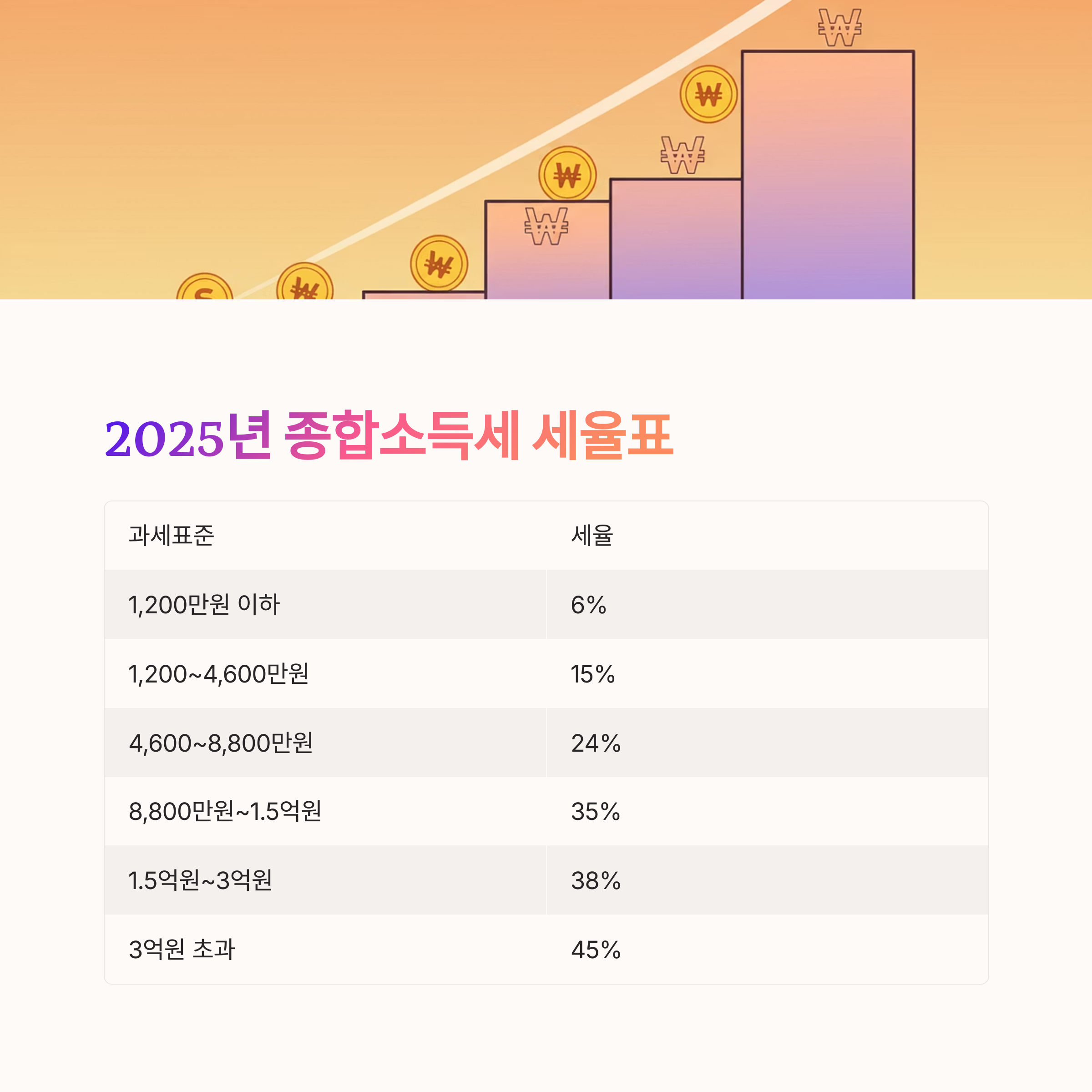 2025년 기준 종합소득세는 여전히 6단계 누진세 구조를 따릅니다.